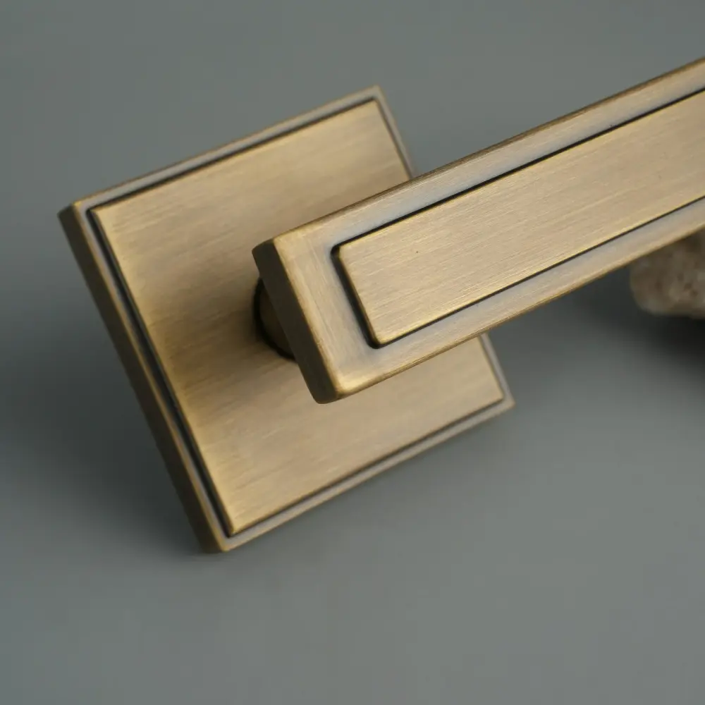 В дизайне применяется широкая многоугольная фаска с затененным эффектом, это создает игру света и тени на поверхности латунной ручки с отсылкой к античным формам. Каждая грань дарит эмоцию наслаждения классикой, превращая обычный предмет в произведение искусства. Такая ручка не просто функциональный элемент, а ключевая деталь интерьера, которая подчеркивает его историческую глубину и эстетическую ценность. Её присутствие в пространстве напоминает о вечных канонах красоты, привнося дух timeless luxury в современный контекст. Тщательно продуманная геометрия и мастерская обработка металла обеспечивают не только визуальное, но и тактильное удовольствие, делая каждый контакт с ней особенным.