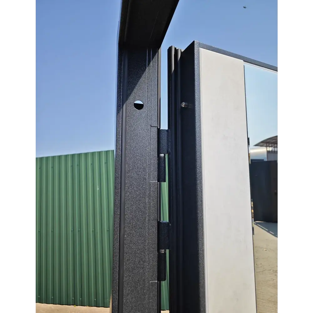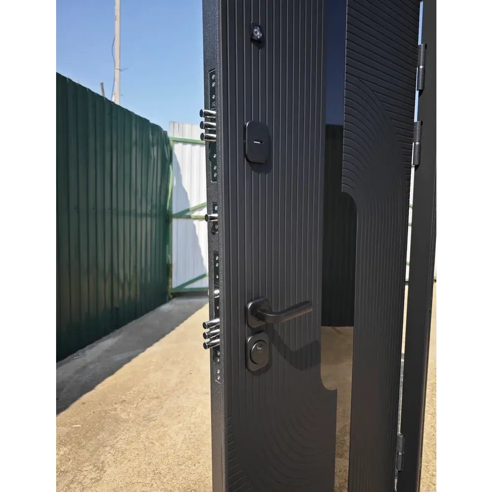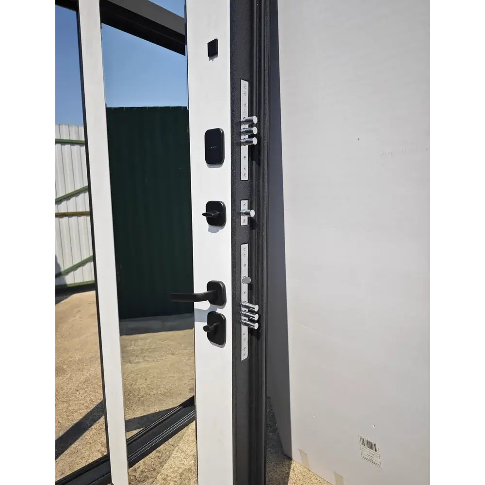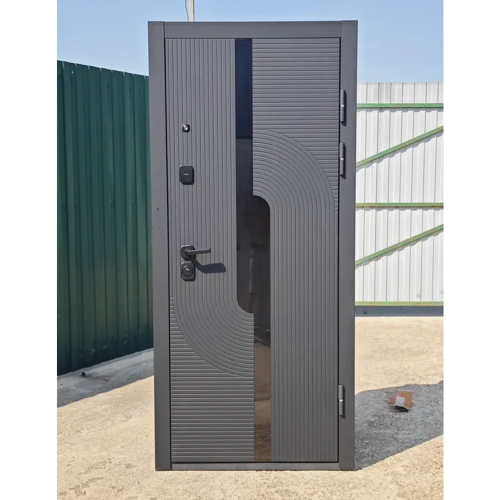 Входная дверь Е‑трейд (толщина 10 см) с двусторонней отделкой — сочетание премиального дизайна и надёжной защиты. Конструкция с усиленным металлическим каркасом гарантирует устойчивость к взлому. Толщина 10 см и многослойная изоляция обеспечивают отличную тепло- и звукоизоляцию. Внешняя панель — букле в оттенке «Графит» (устойчиво к царапинам и влаге), внутренняя — эффектное сочетание зеркала и панели «Бетон Снежный», добавляющее пространству света и объёма. Практичная, стильная и функциональная модель для современных интерьеров.