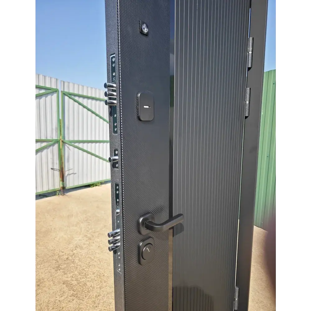 Входная дверь Е‑трейд (толщина 10 см) с двусторонней отделкой — гармоничное сочетание прочности и современного дизайна. Усиленный металлический каркас и многослойная изоляция гарантируют надёжную защиту от взлома, отличную тепло- и звукоизоляцию. Внешняя панель в стиле «Карбон Букле графит» придаёт солидный вид и устойчива к внешним воздействиям, внутренняя отделка «Эмалит Белый» создаёт светлый, лаконичный акцент в интерьере. Практичное решение для квартиры или дома: долговечность, безопасность и эстетика в каждой детали.